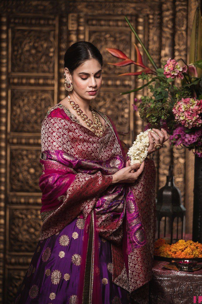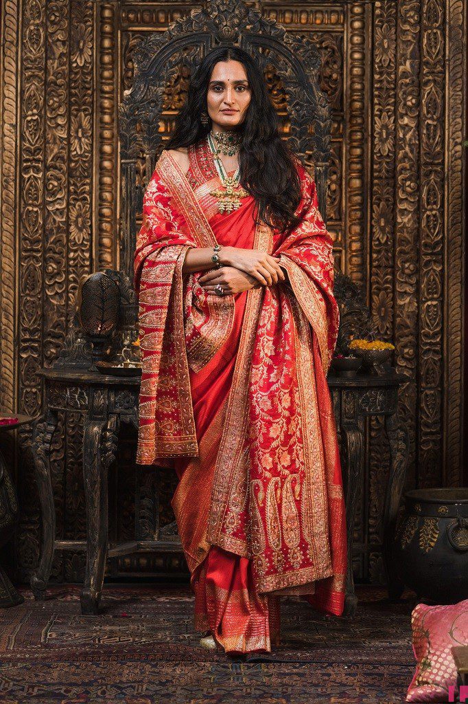 The high place of this assortment is its antique brocade sarees which have been sourced from the first closets of the maharanis from their royal residences of Rajasthan, and have been reestablished by our own weavers from Banaras. The twist and the weft of the weaves are imbued with unadulterated gold and unadulterated silver strains the method, which has become terminated throughout the long term. The repressed lovely shades of light turquoise, light pink, light peach, and dynamic purple combined with rich weighty weaves of the wonderful classical sarees. These saris talk about the work of art and repressed taste and style of maharanis of that period, who decorated the excellence of their imperial life in their castles.